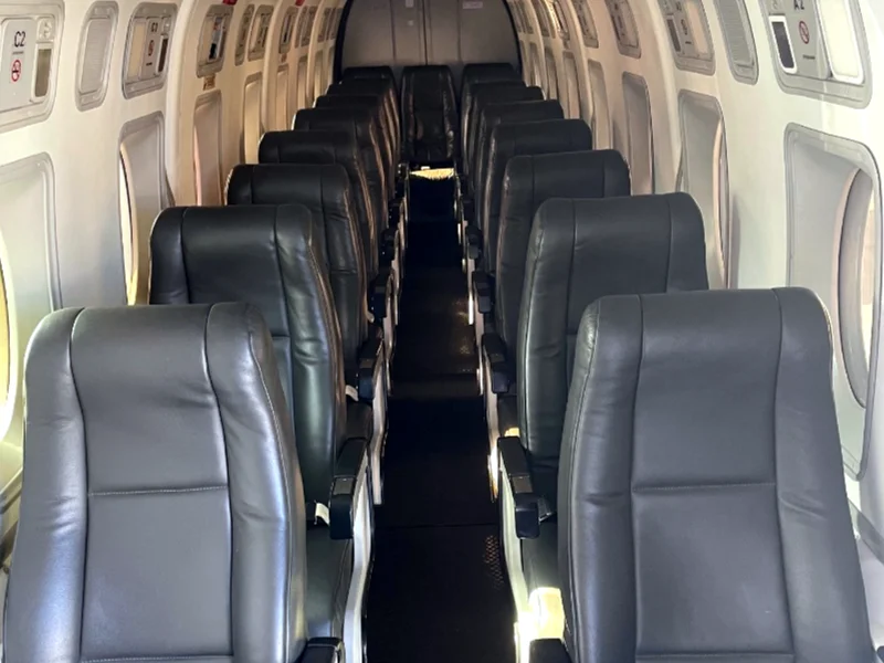 The Beechcraft 1900 Airliner is a modern generation regional turboprop that can economically carry groups of up to 19 passengers in comfort. The aircraft is particularly useful for short-medium range group charters or mining crew changes. The Beechcraft 1900 can operate safely on relatively short airstrips and it can take off and land on grass and rough runways. With the Beechcraft 1900 large cargo door it can easily be modified into cargo configuration to suit all your cargo needs.